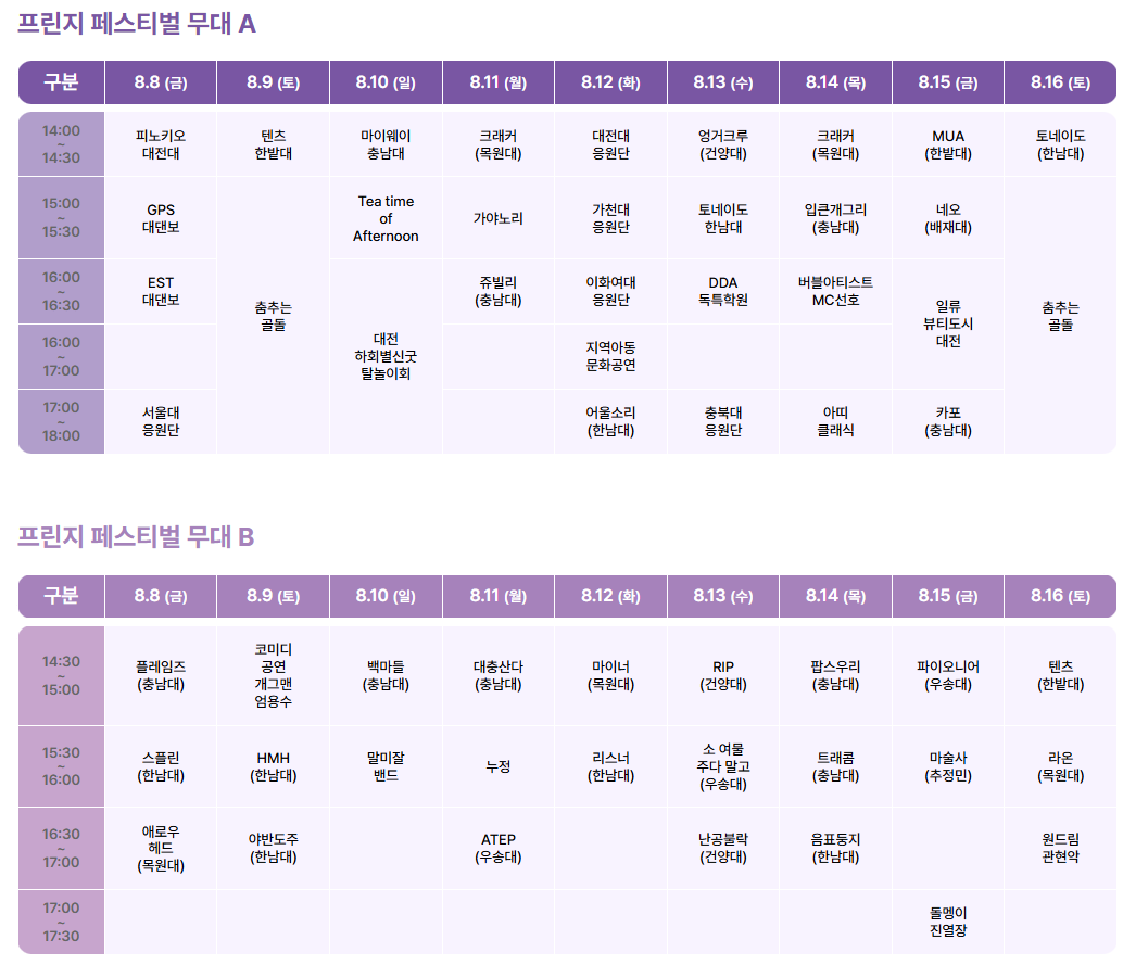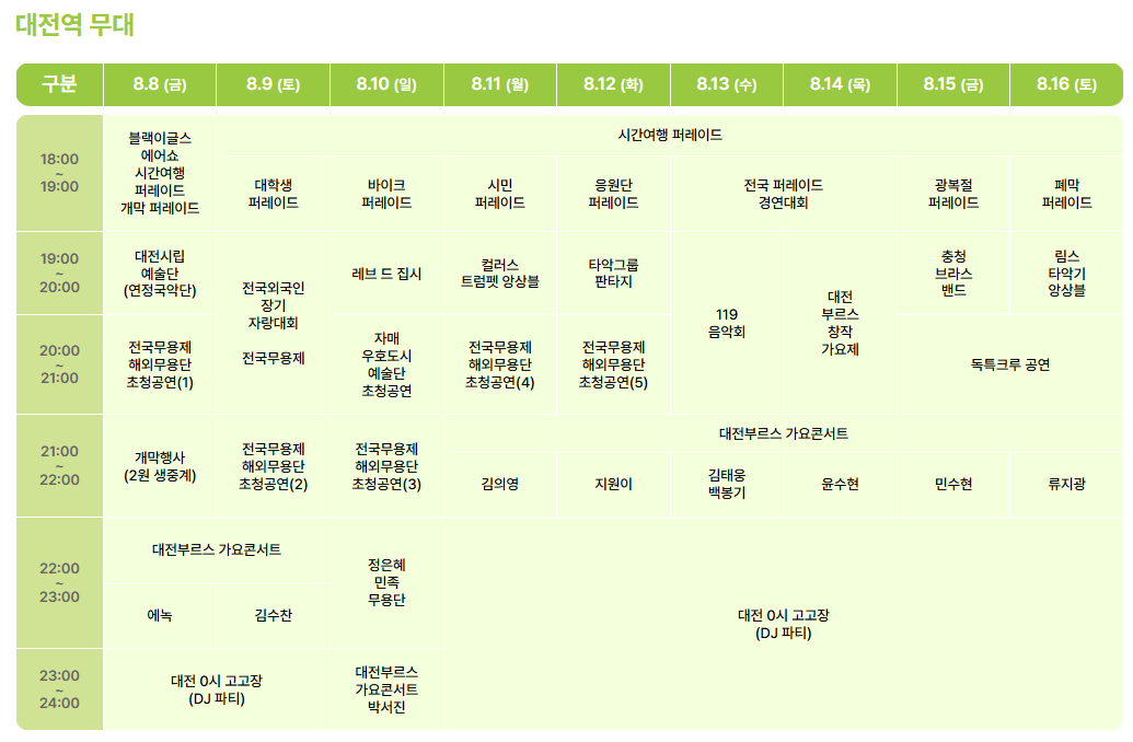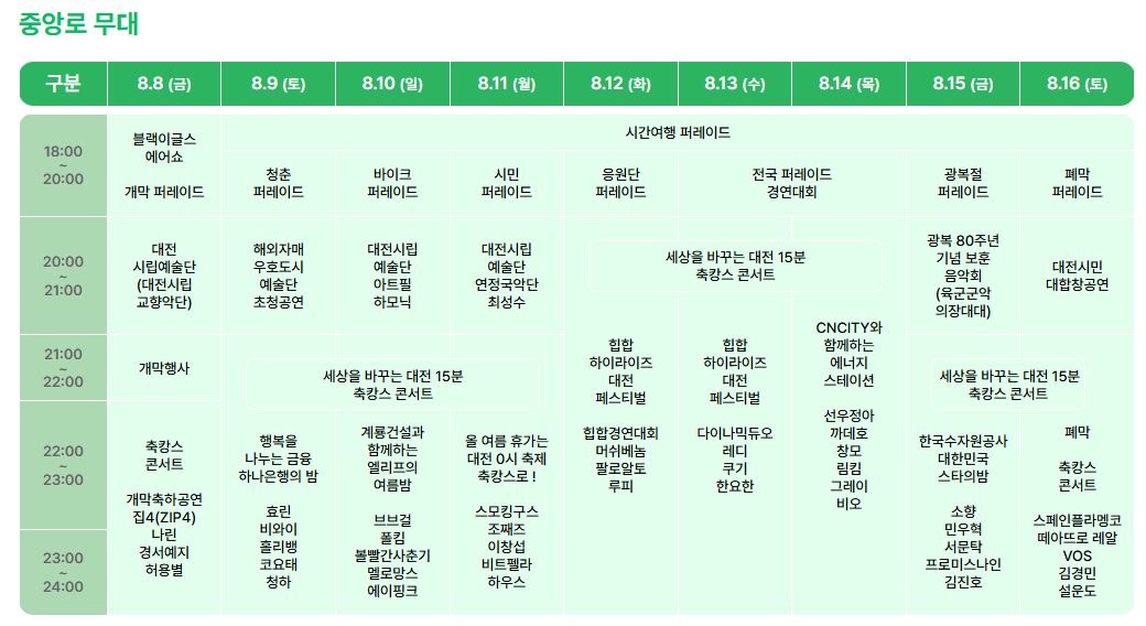 - 장소: 중앙로, 대전역 광장, 프린지 무대