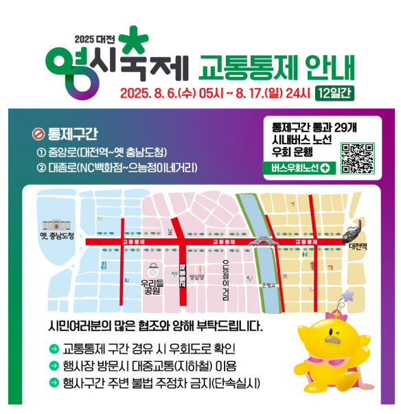 - 통제구간: 중앙로, 대종로, 대전로, 보문로, 대흥로 등