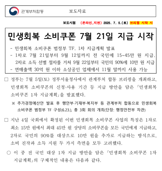 이번 소비쿠폰 정책은 ▲코로나 이후 경기 회복 속도 둔화 ▲물가·금리 상승으로 인한 민생 어려움 ▲소상공인 매출 감소 등을 동시에 타개하기 위한 정부의 민생력 회복 전략입니다.