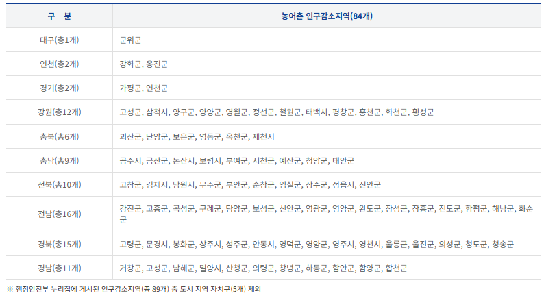 ✅ 대상 지역 구체 확인 (인구감소지역 84개)