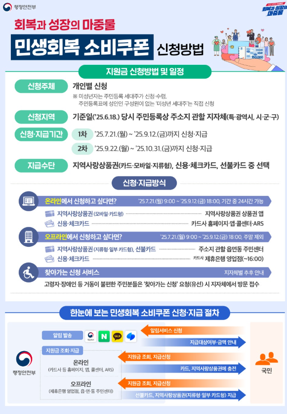 7월 21일부터 1차 지급이 시작되며, 소득·지역 조건에 따라 2차 지급도 진행될 예정입니다.